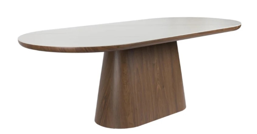 Wykonany z naturalnego drewna orzechowego i forniru, stół emanuje ciepłem i naturalnym pięknem, które podkreśla każdy rodzinny posiłek i świąteczne spotkanie